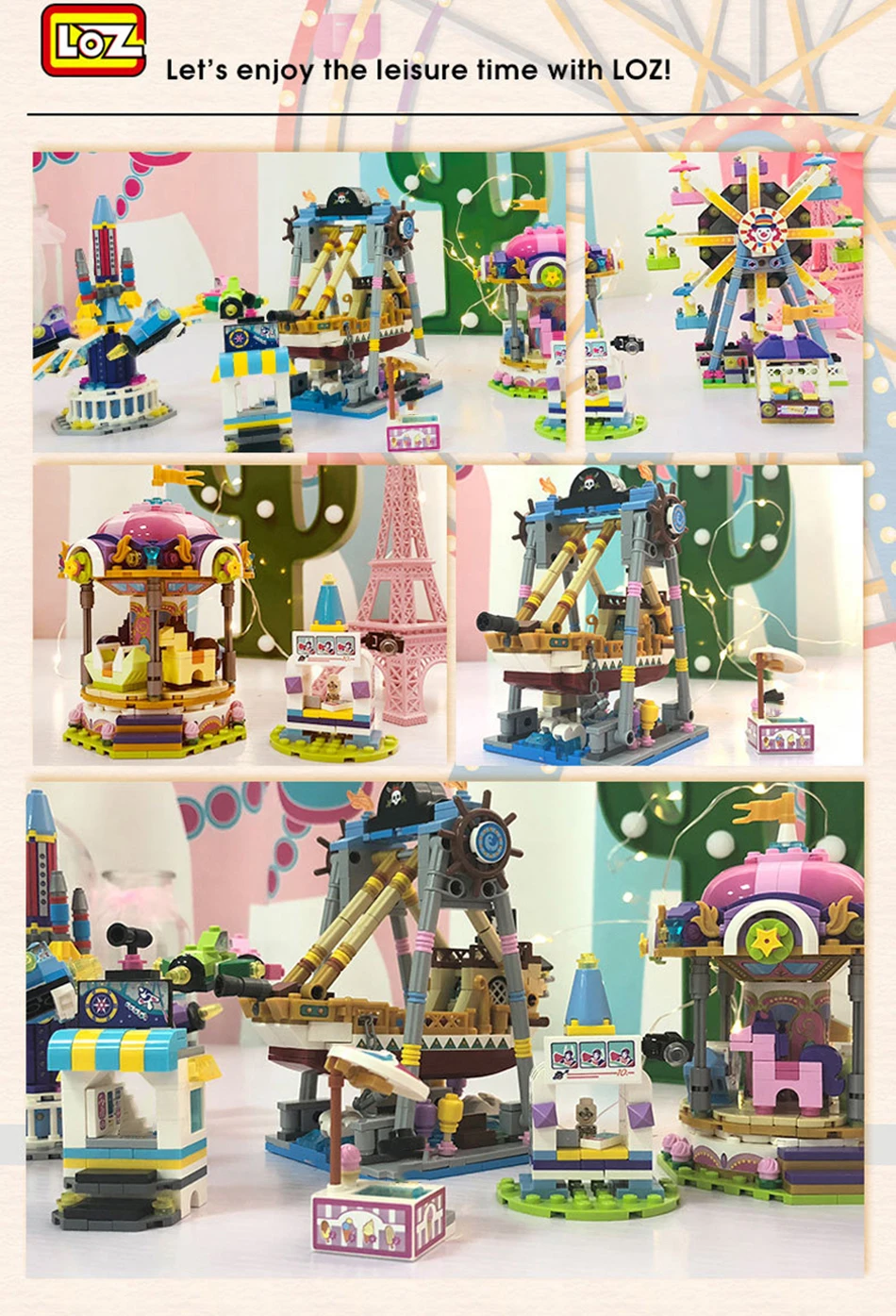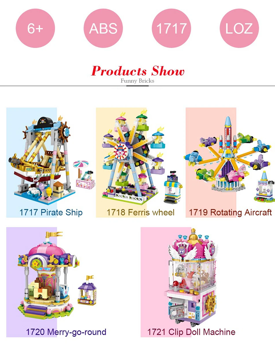 LOZ Mini building Blocks park mini architecture bricks model Assembly Educational DIY kits kids toys Ferris DIY Bricks Toys