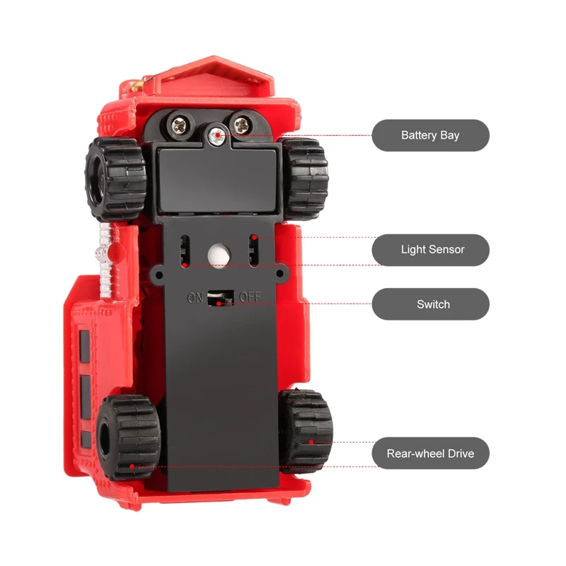 2.Easy To Use - draw a line with a marker or dark crayon on a piece of paper, and when you turn the car on, there is a sensor on the bottom that follows the line. The train follows the marker line just like the directions indicate.
