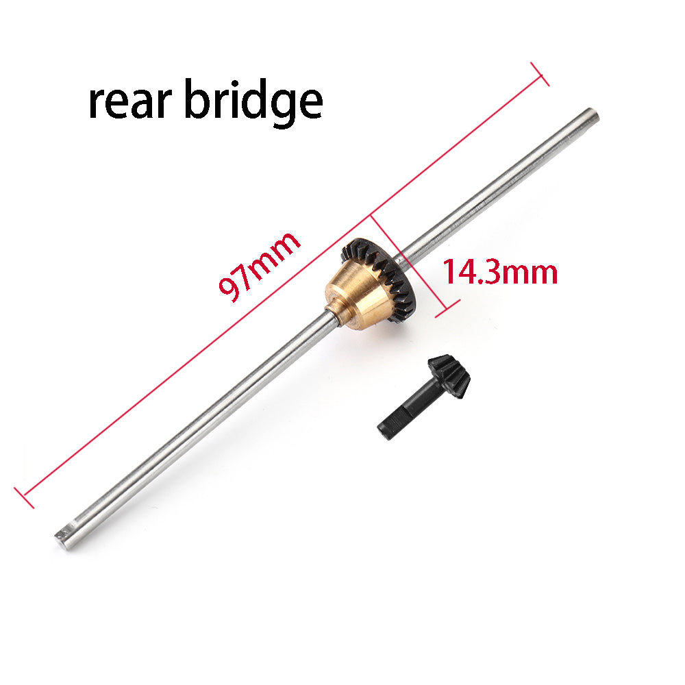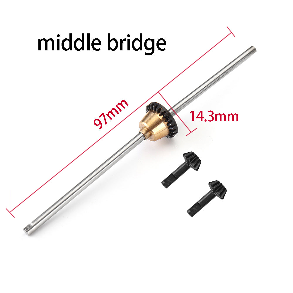 Middle differential:97x14.3x14.3mm (with 2pcs umbrella gear) rear differential:97x14.3x14.3mm (with 1pc umbrella gear) Material:metal