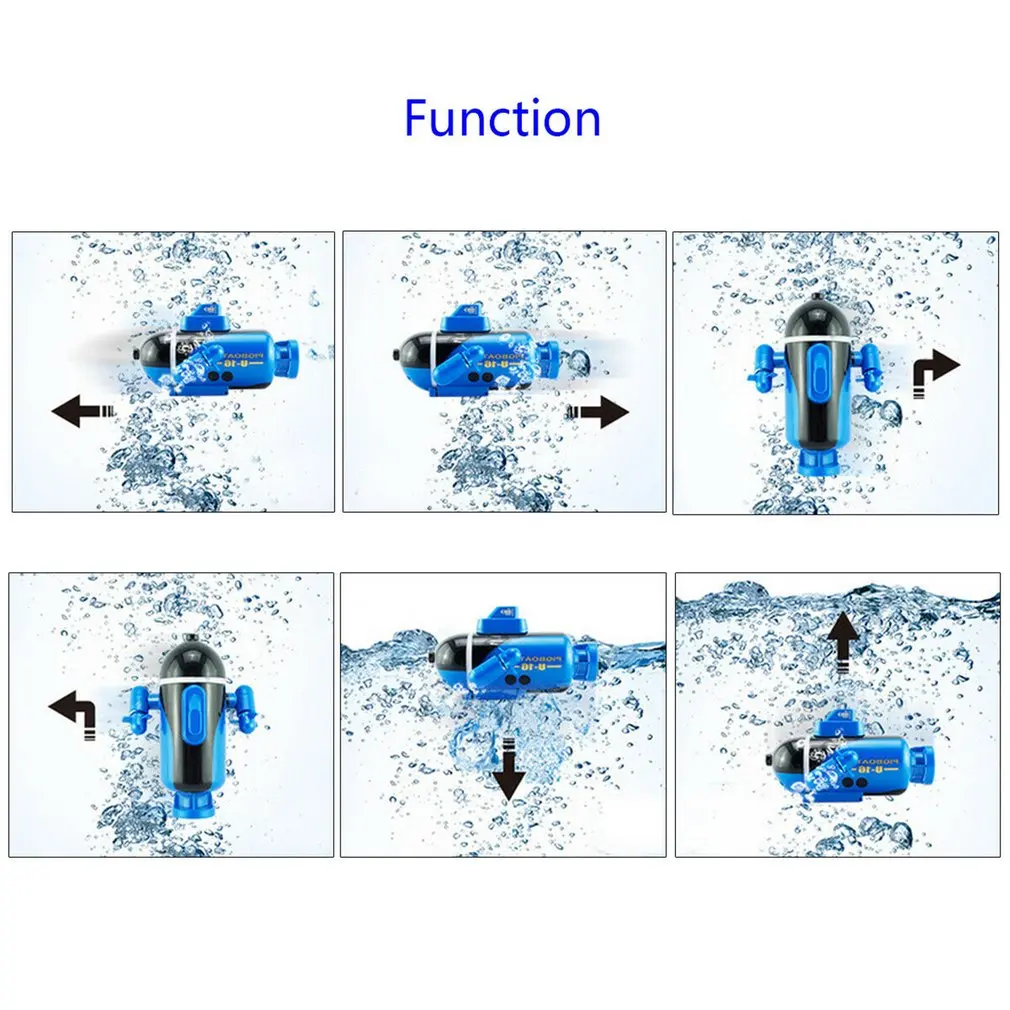 Descriptions: Leaving Water protection, the bottom of the submarine has two metal joints, touch-the water then has the power, leaving the water then off the power and protect. It will be a good companion of your kid, bringing your kid lots of fun and giving your kid unforgettable memory on special days