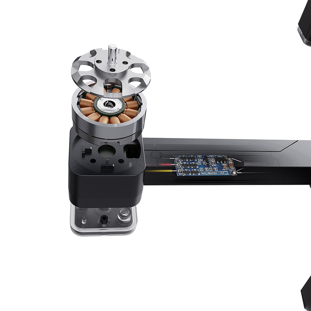 6.Powerful Brushless Motor: MT2204 1400KV brushless motor, the most cost brushless motor among the brushless motor lines. Maximum upward lift 230g.