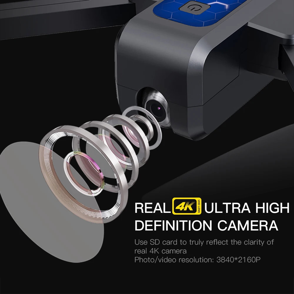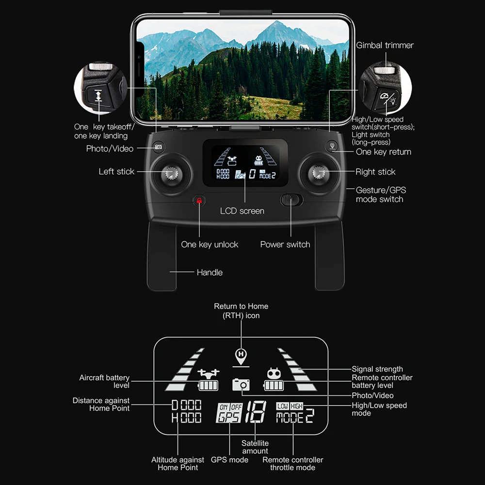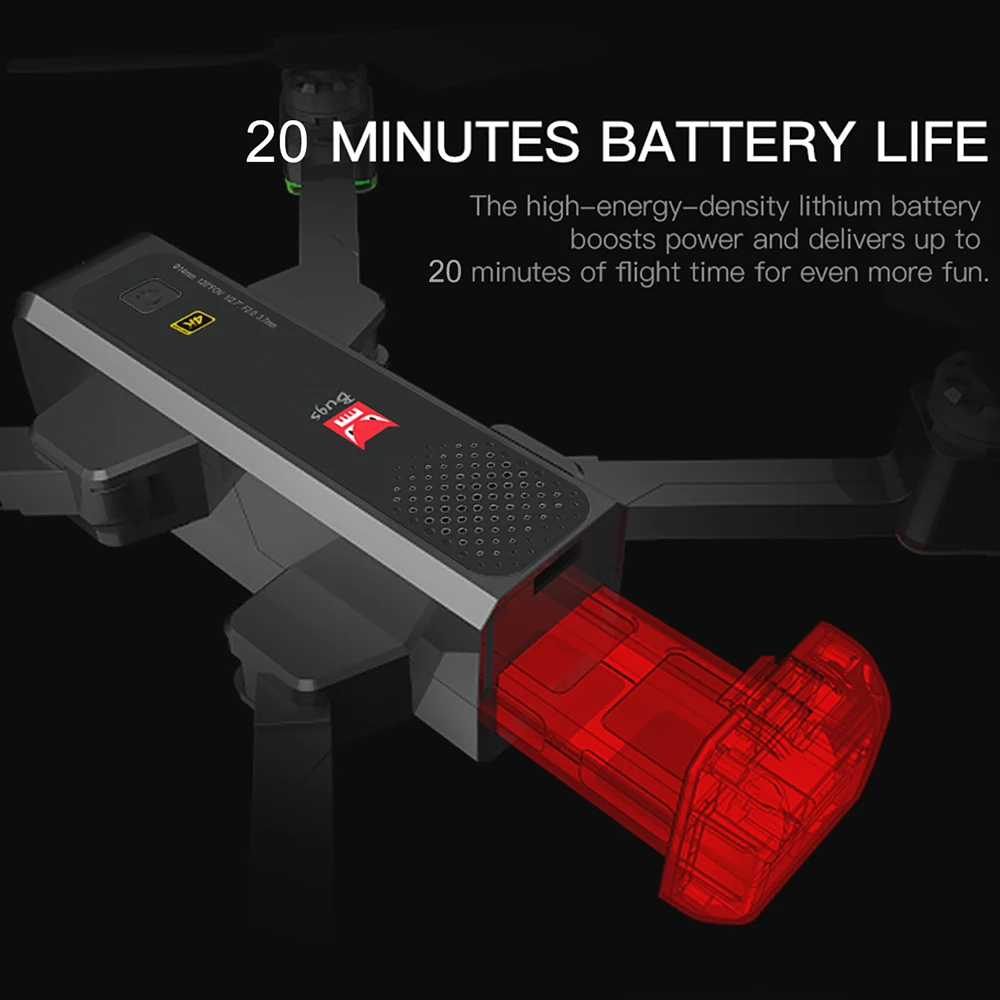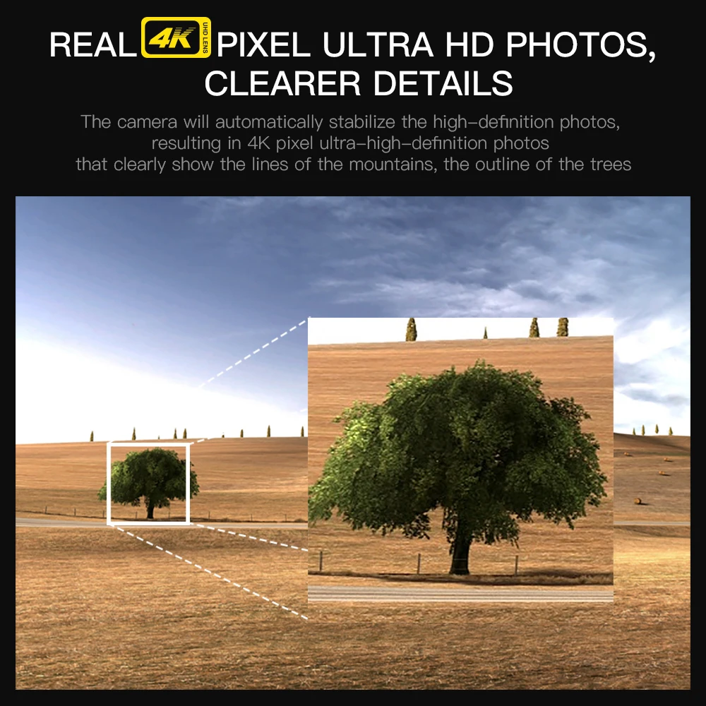The upgraded camera with 110° FOV (field of view) lens gives a panoramic view for recording your unforgettable moment, to capture pictures and videos from the sky, Adjustable 0°- 90°Pitch angle.