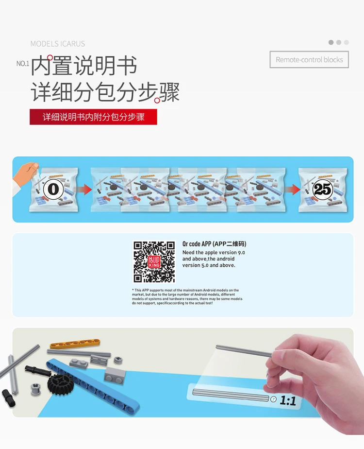 * Packing List:Blocks +Book Instruction (specific:send by email)