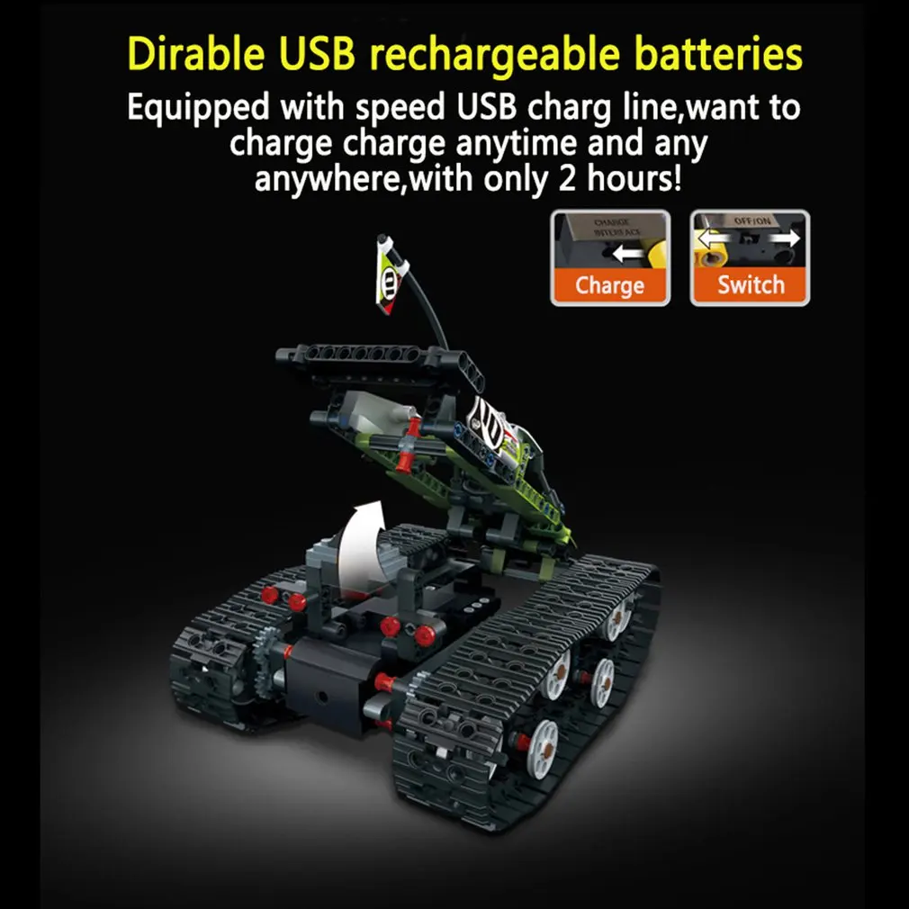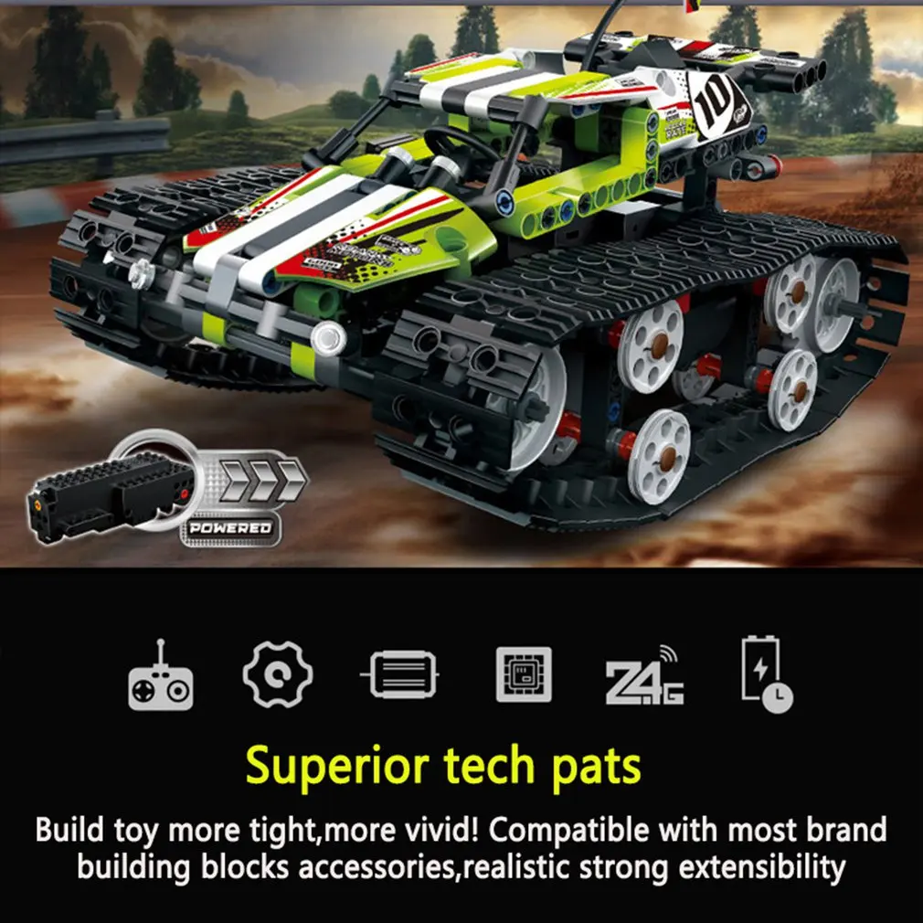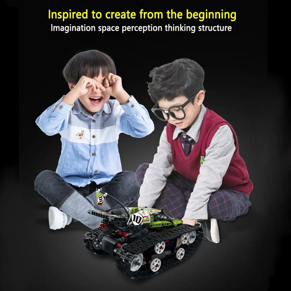 MoFun-13023 2.4G 4CH USB Charging Building Block Simulated Tracked High Speed Car 410pcs DIY Electric RC Car Model For Children