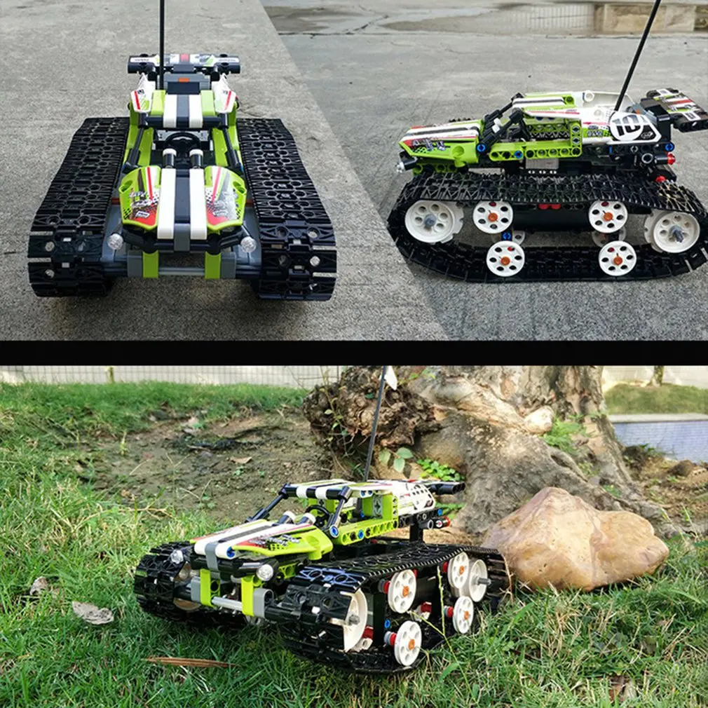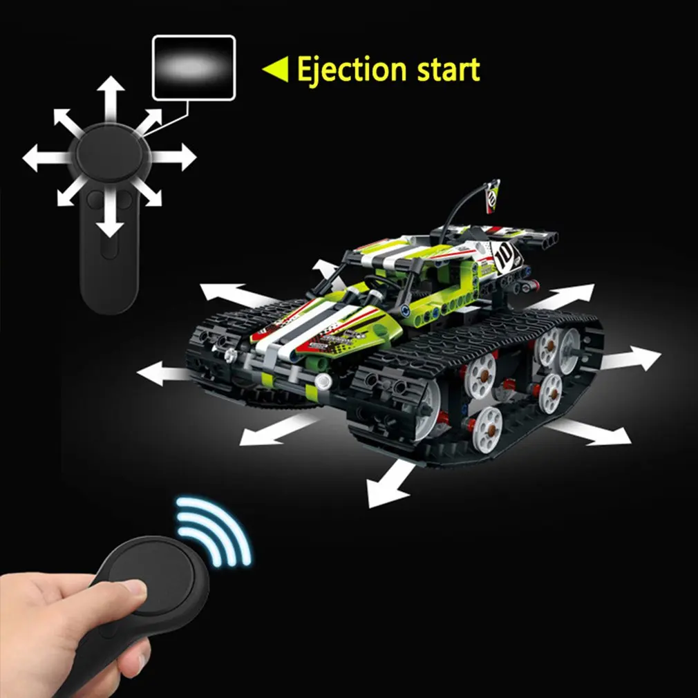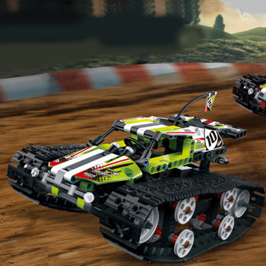 MoFun-13023 2.4G 4CH USB Charging Building Block Simulated Tracked High Speed Car 410pcs DIY Electric RC Car Model For Children