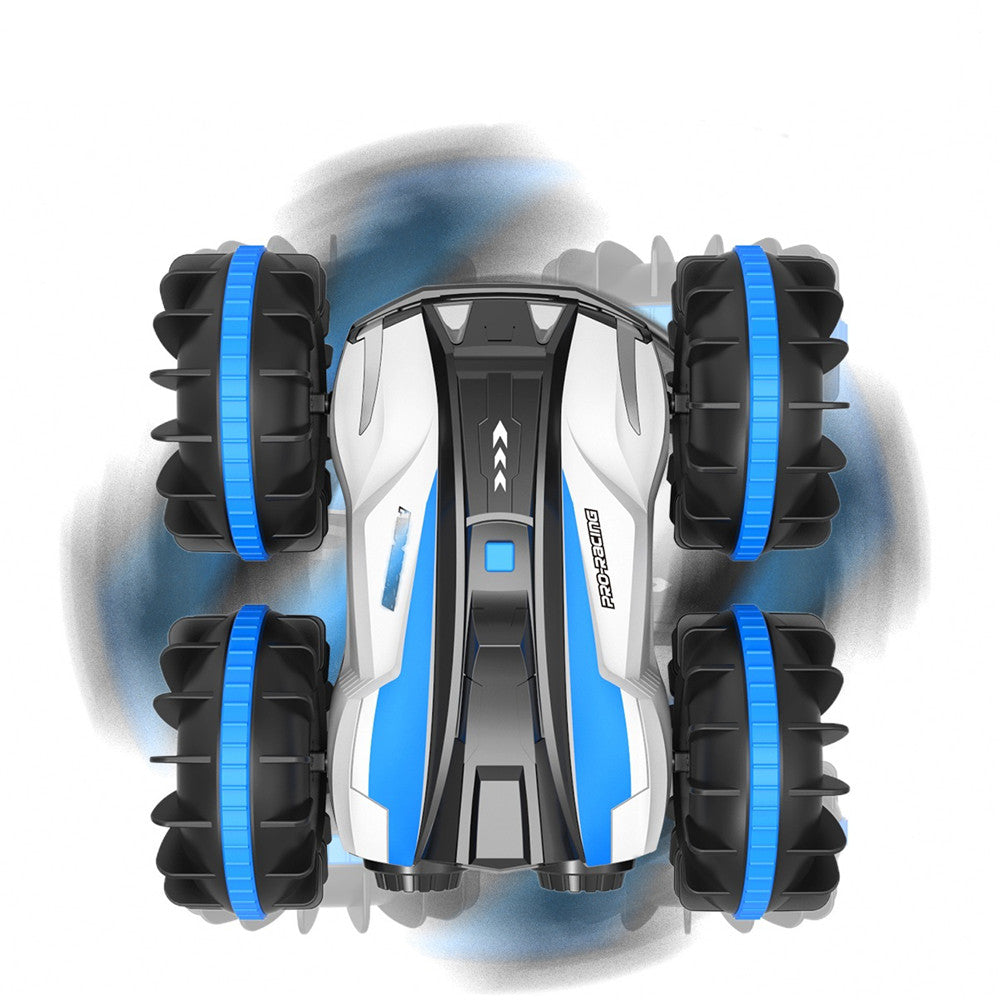 Great Function- Double sided and amphibious RC car, capable to work well on land and water; features 360-degree spin and flip for free control.