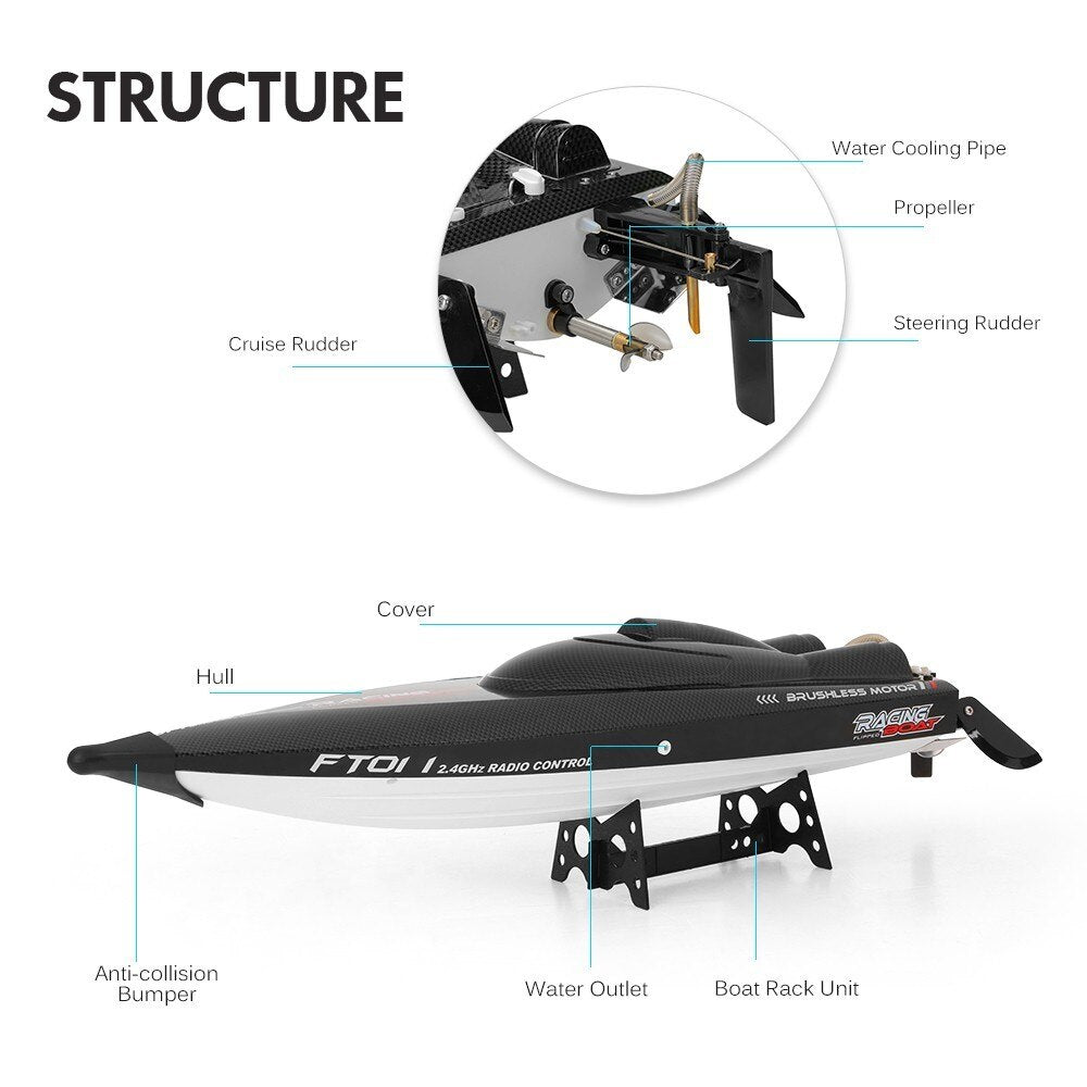 The Feilun FT011 uses high-power brushless motor as the drive system, and adopt high-precision servo to control steering system, water-cooling system. With high performance battery, a top speed can reach at 55km/h. What's more, a flipped self-righting function makes its operability much more interesting.