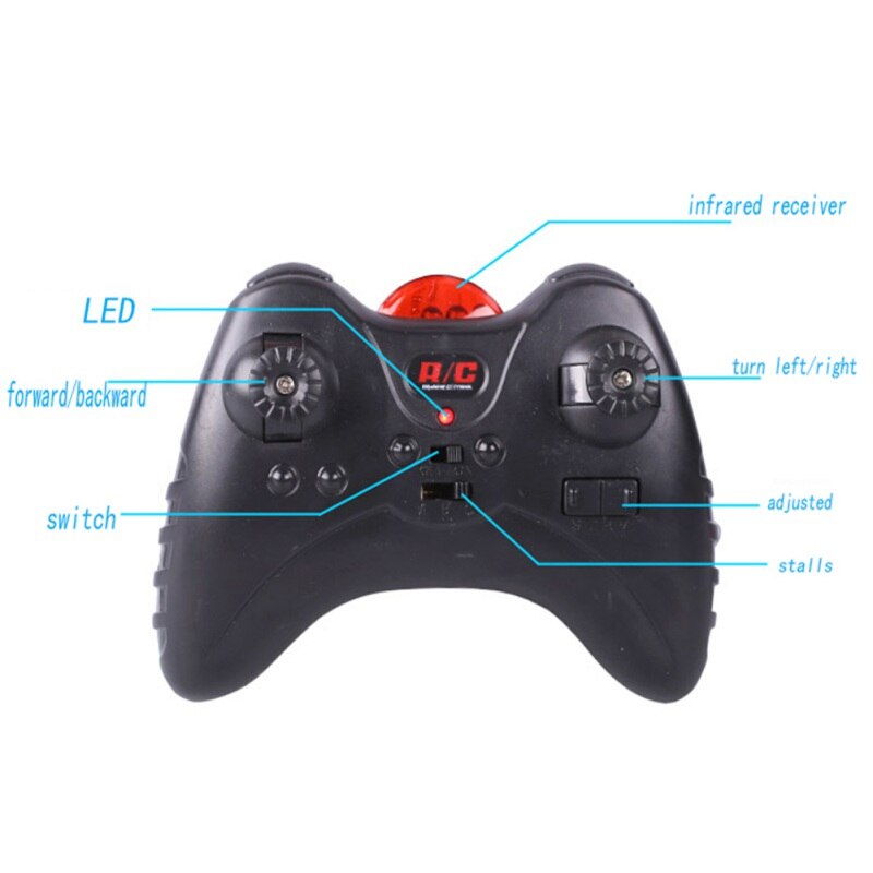 Stunt car: smooth flat walls, glass, floor, can run, function forward, back, turn left, turn right, rotate 360 degrees
