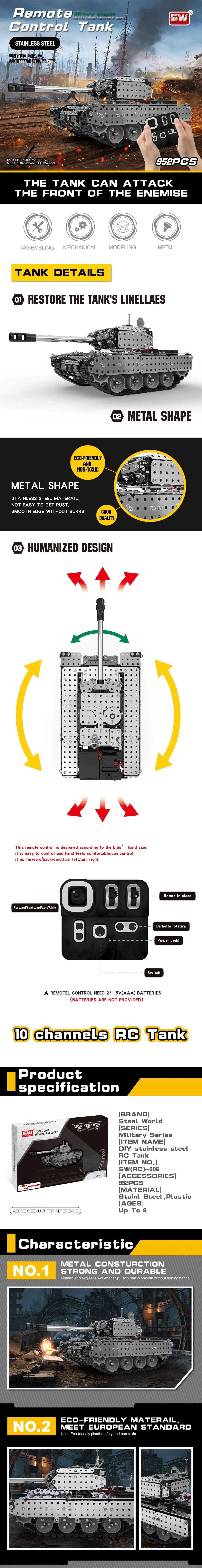 New RC Stainless Steel Assembly Remote Control Tank Kit RC Military Tank Set Bricks Compatible With Model Building Blocks