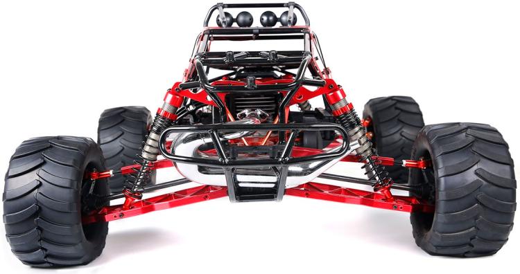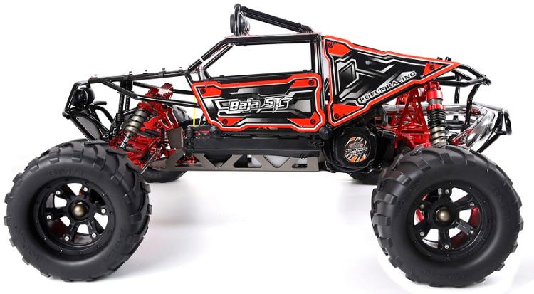 NEW from Rovan RC is the latest biggest version of the 2WD BAJA to be produced! It's super wide long travel suspension is 8 inches wider then a stock Baja! Soaks up big jumps and bumps great. Includes Many Aluminum upgrades like Shock Towers and Supports. Suspension Arms and Symetrical Steering System.