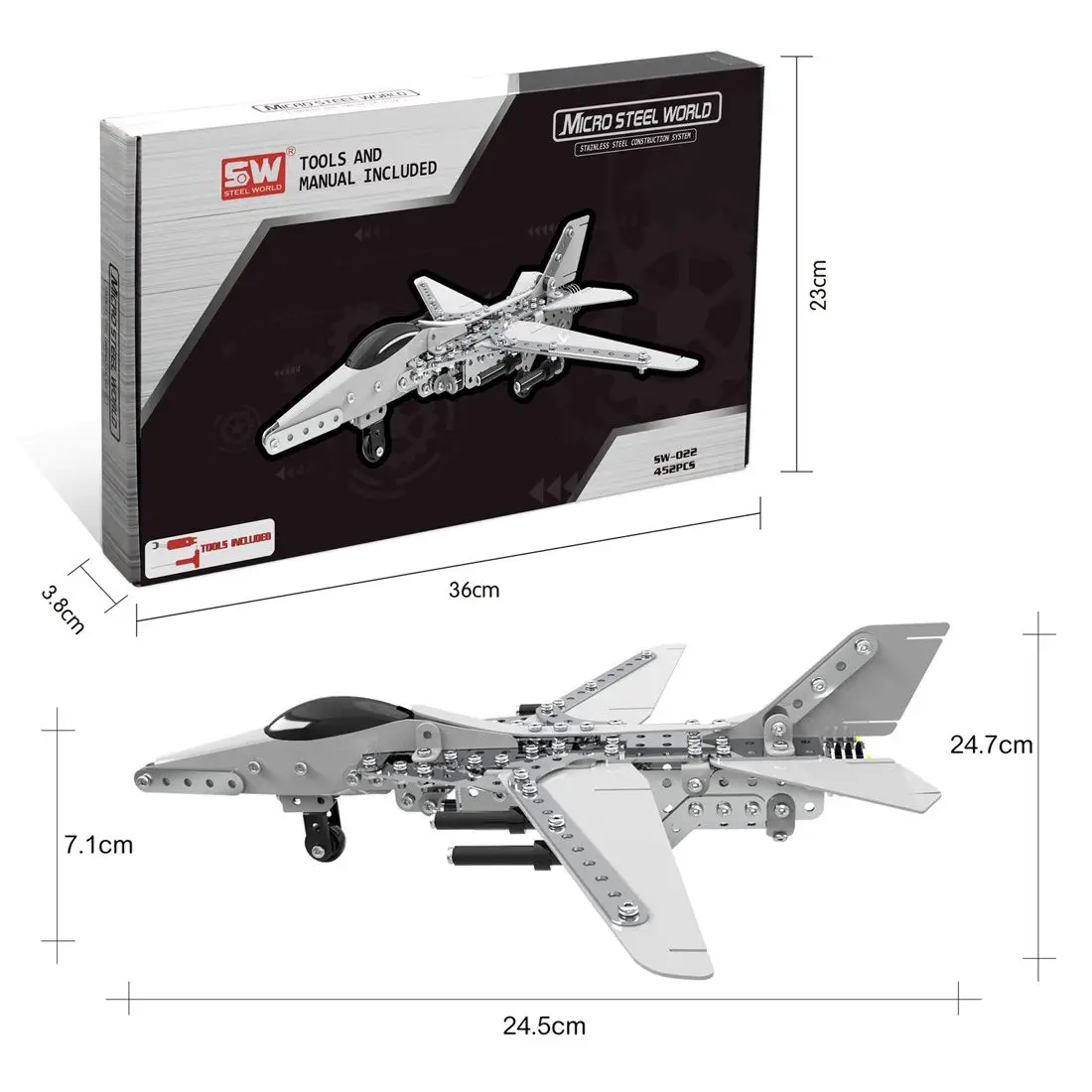 452Pcs plane Shape DIY Stainless Steel Metal Assembly Building Block Kit Educational Steam Stem Toys