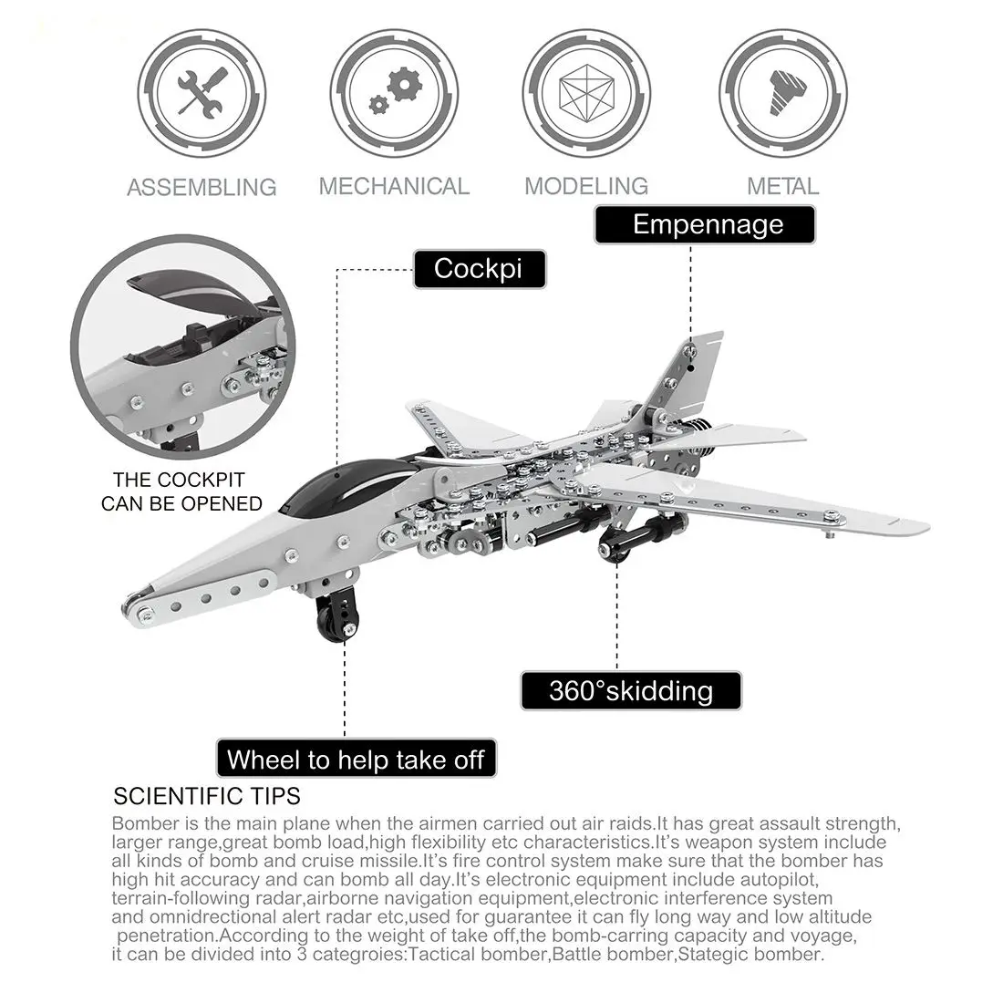 NFSTRIKE 452Pcs Plane Helicopter Model DIY Stainless Steel Metal Assembly Building Block Kit Steam Stem Toys for kids boys