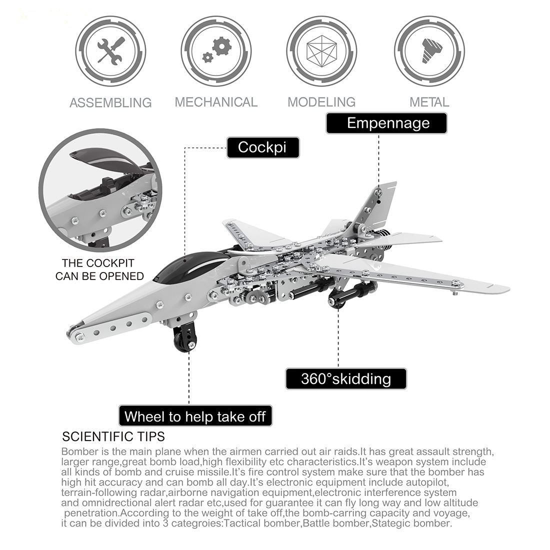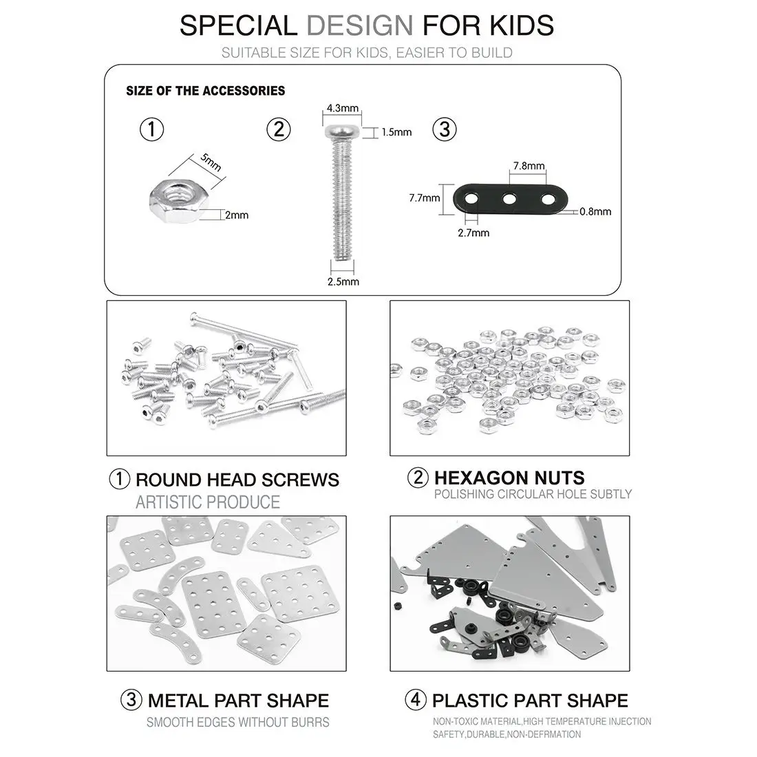 .This metal building block is a novice difficulty level and is ideal for first time users. It encourages children to learn engineering and critical thinking skills during construction and takes about 3-5 hours to complete.