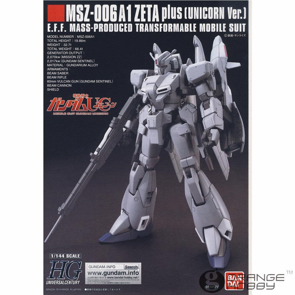 Bandai HGUC 182 1/144 MSZ-006A1 Zeta Plus Unicorn Ver Mobile Suit Assembly Model Kits