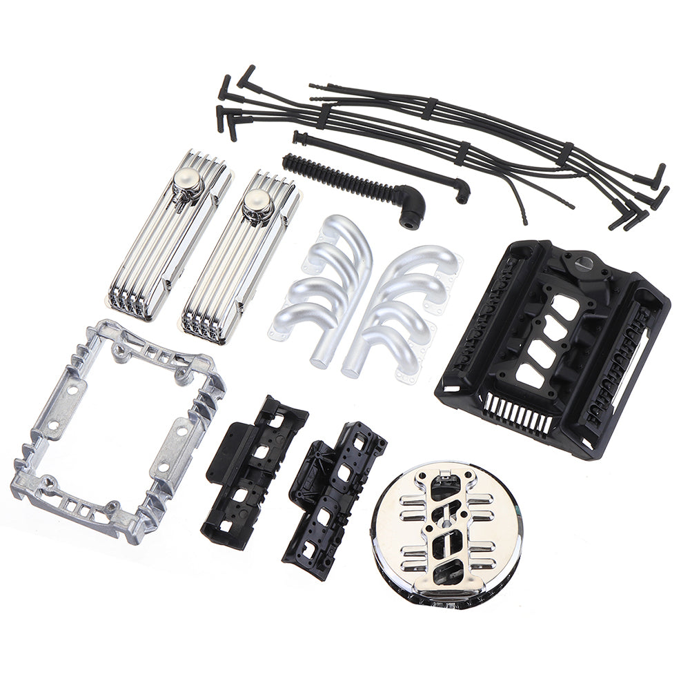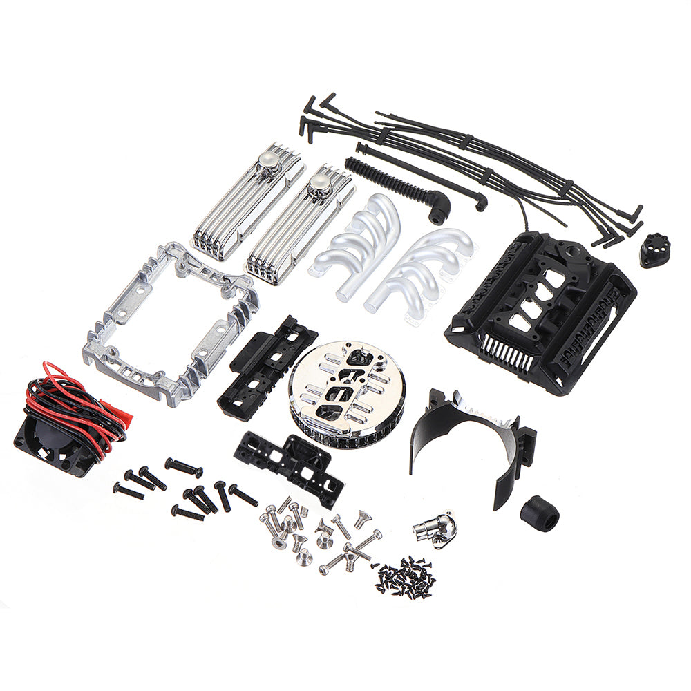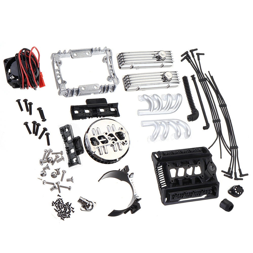 Old V8 Simulation Engine Fan Radiator F82 Electric Fan Hood RC Car Parts