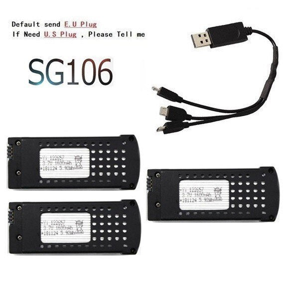 Original 3.7V 1600mAh Lipo Battery and ( 3-in-1 ) Charger For SG106 RC Helicopter Quadcopter Spare Parts 3.7v Drone Battery