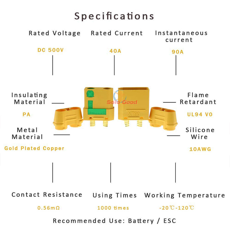 Unique anti-spark design, compatible with XT90.