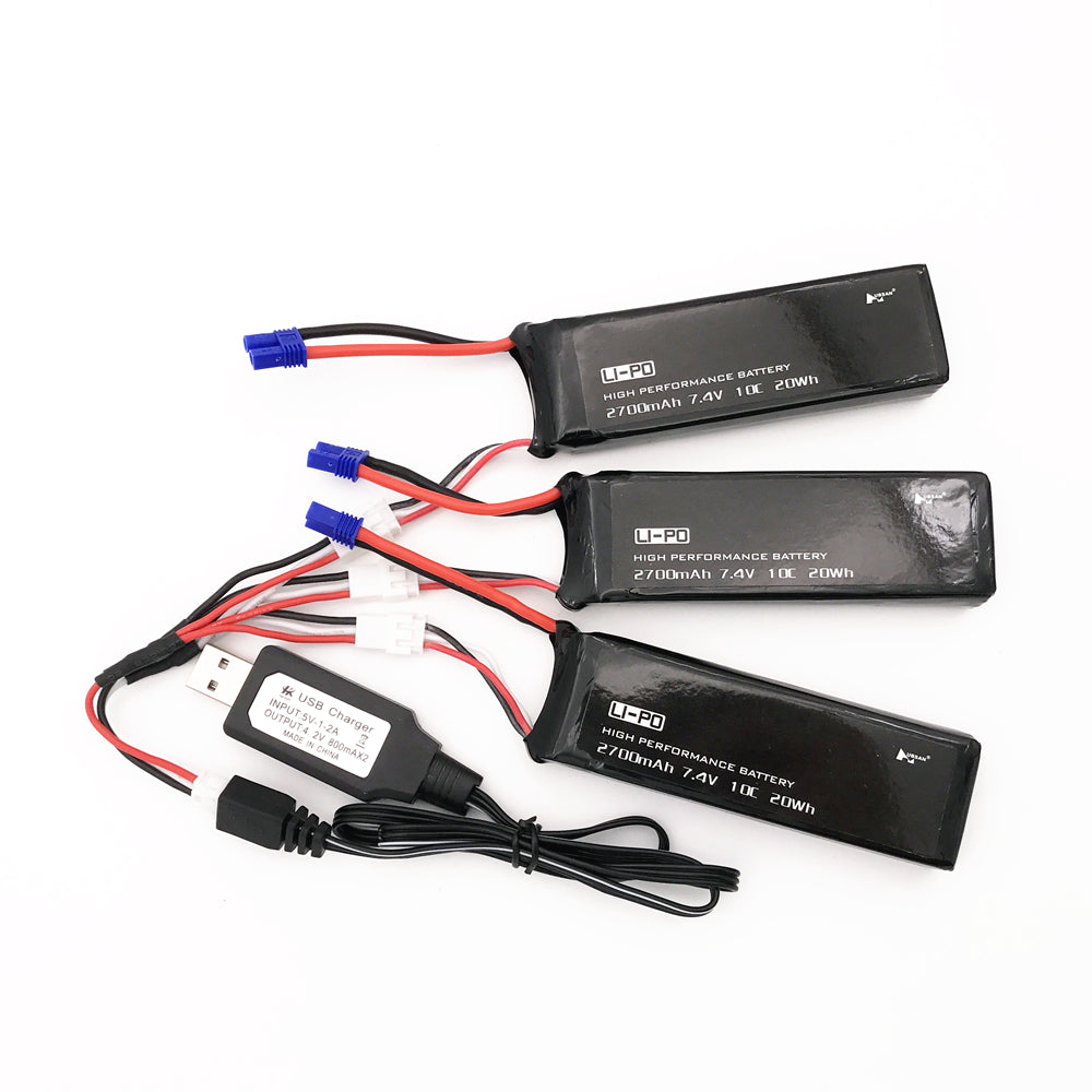 Original Hubsan H501S battery 7.4V 2700mAh 10C For H501S H501C X4 RC Quadcopter Battery with 1 In 3 Cable and USB Charger Set