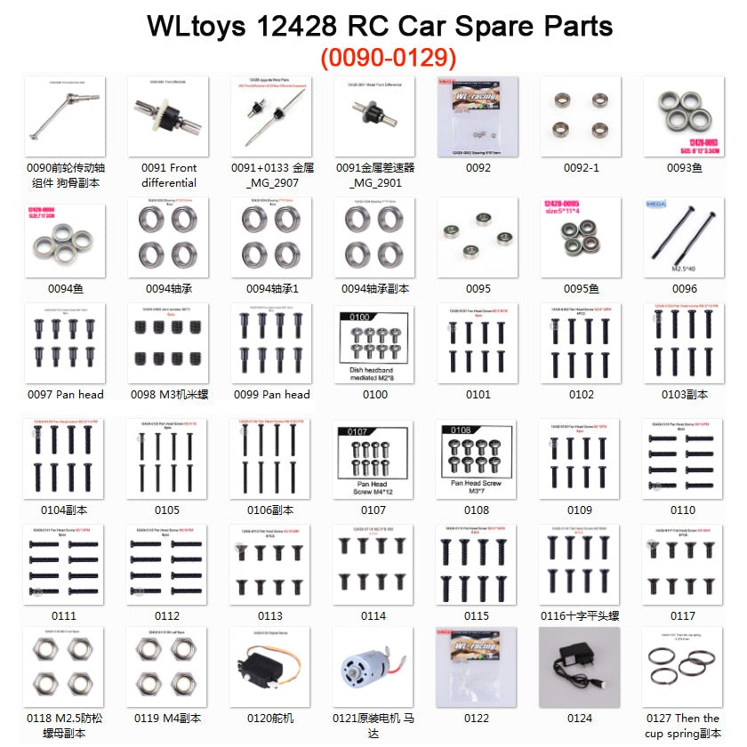 WL Toys 1:12 RC Car Parts for 12428, 12429, 12423