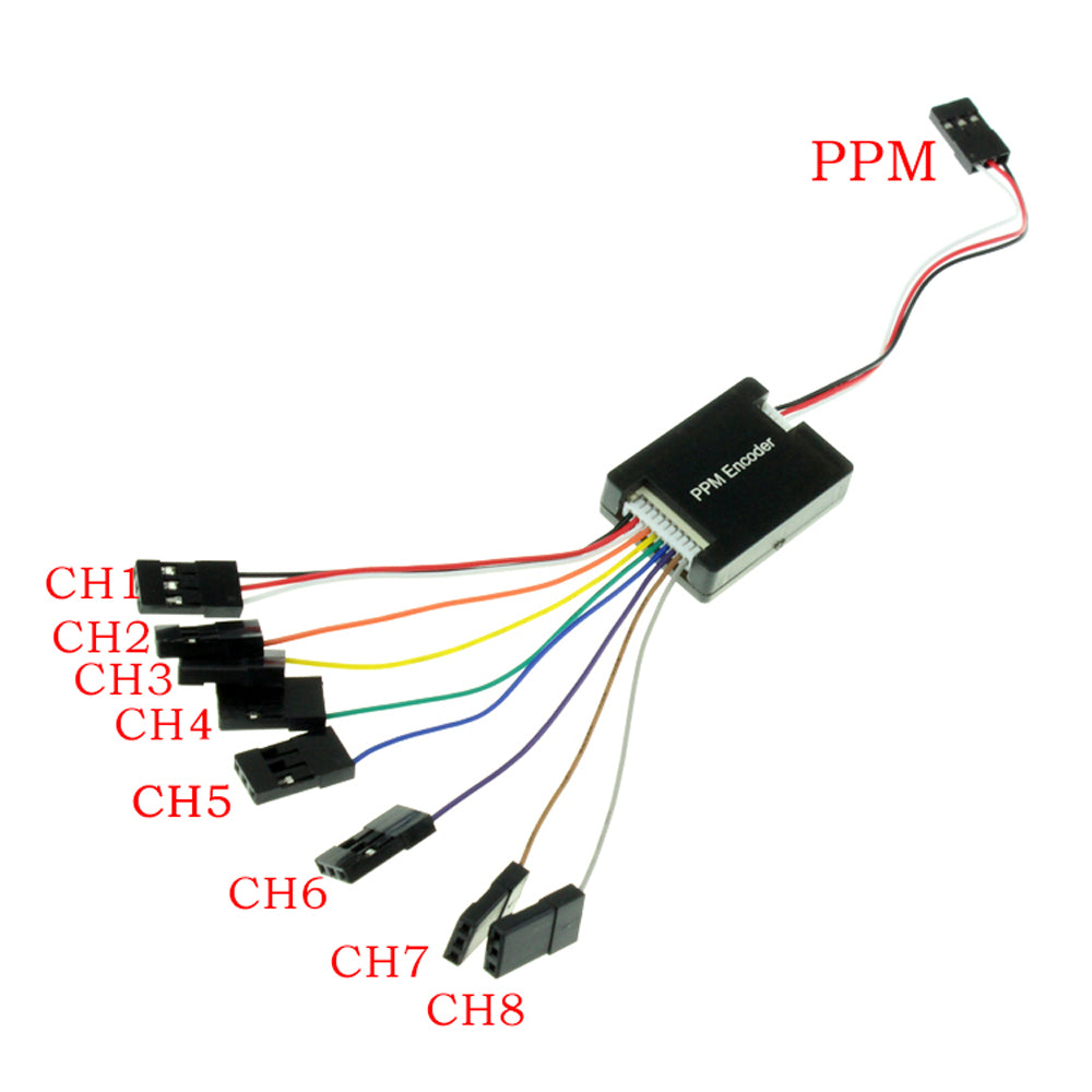 The function of the PPM encoder is to encode the multi-channel PWM signal output by the receiver into a PPM composite signal output (up to 8 channels of PWM input) to connect the supported flight controllers in a single line.