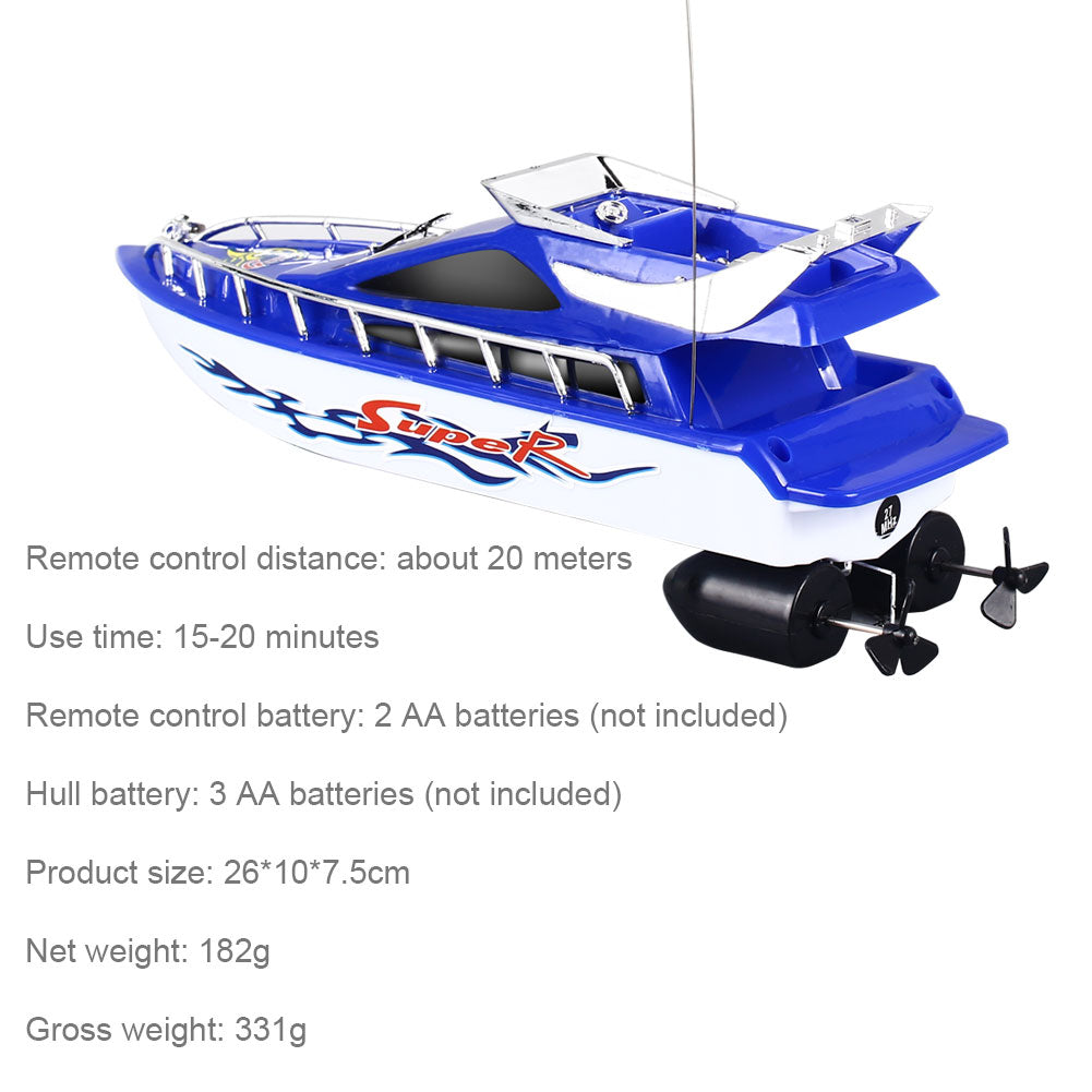 The antenna remote control speedboat can be controlled separately by forward, backward, left turn, right turn. It can be played in a relatively calm lake such as a pond or inland river. The control distance is about 20 meters. The speed is faster and more fun. When the lake is large, avoid directly driving to the lake. At the center of the lake, you cannot remotely control when the signal distance is exceeded.