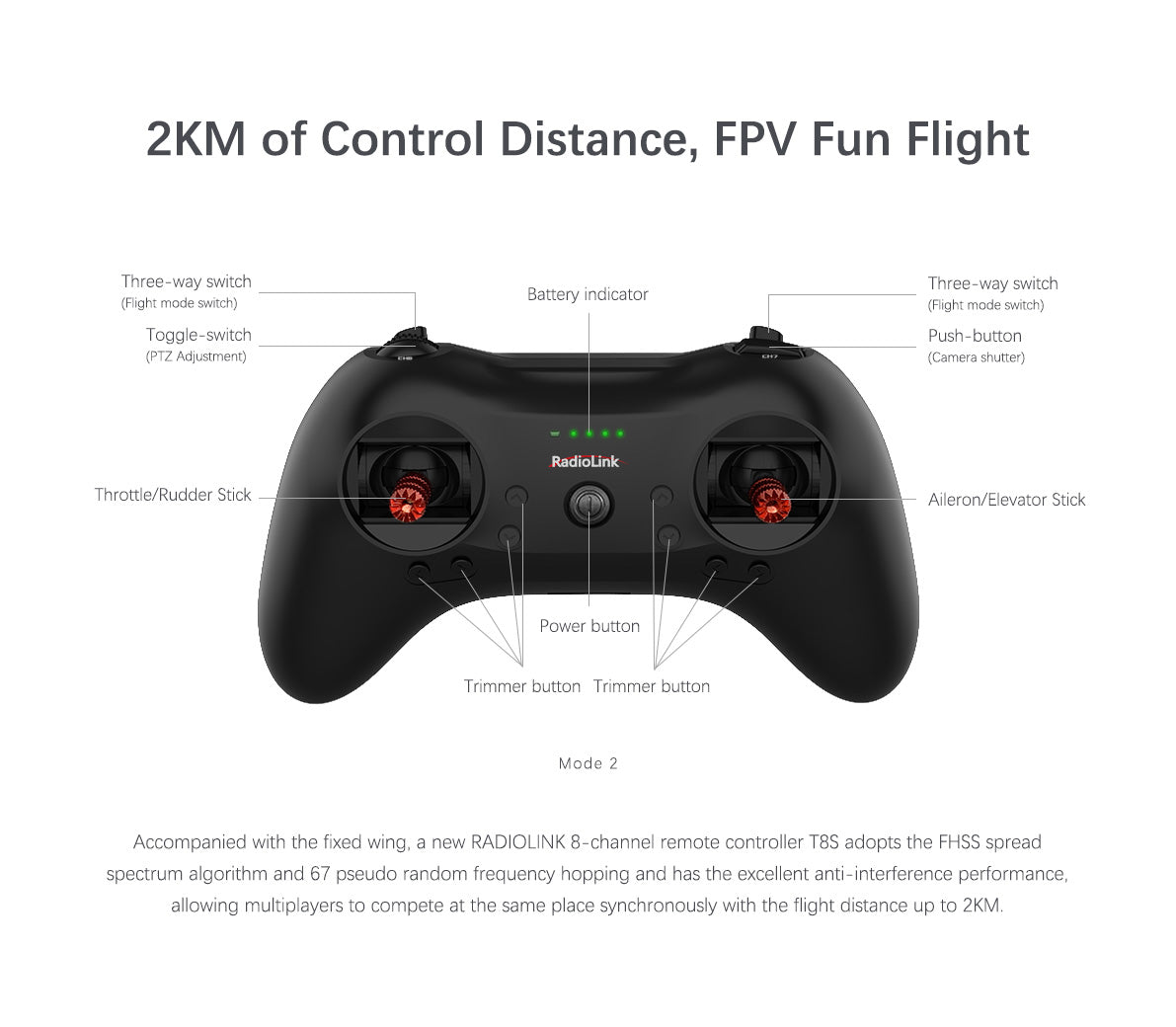 Flight Distance : 2km (with RADIOLINK T8FB/T8S)