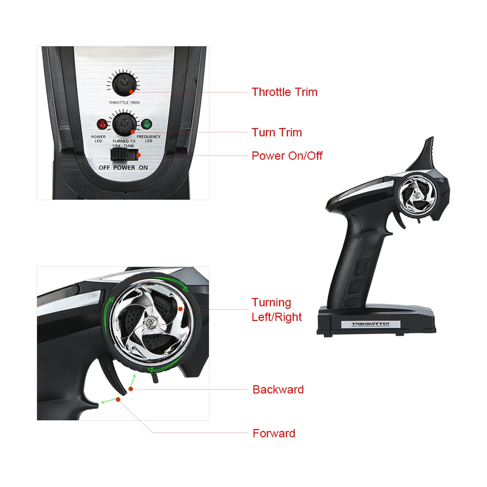 operation instruction:fully charge the boat battery and use a new battery for the controller.power on the boat and then put it above the water.but pay attention that the controller needed to be turned on within 5 seconds to bind with the boat.