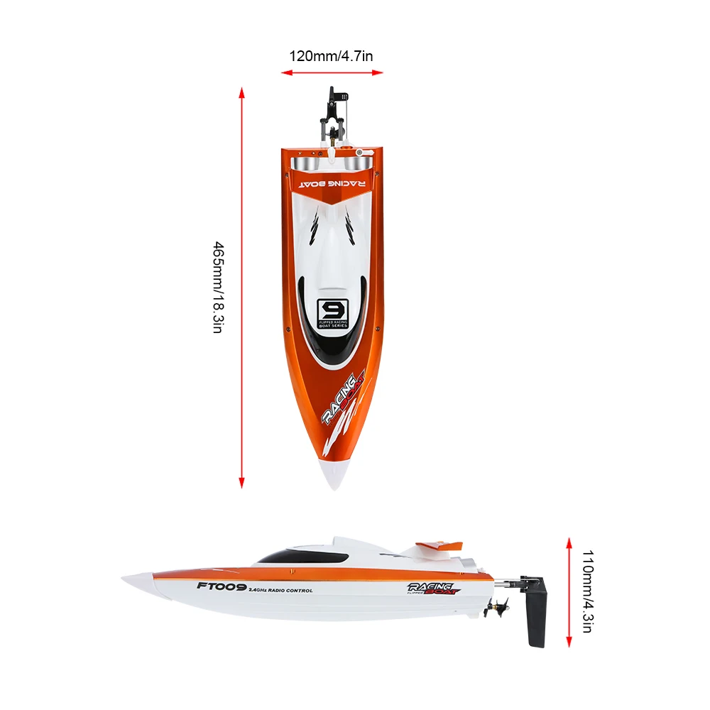 The FT009 is a wireless RC boat that is fast, fun and easy to use. It uses water cooling system, and the use of advanced 2.4G hopping technology can realize longer distance control. It is a great racing boat at a great price. Get ready to enjoy it!