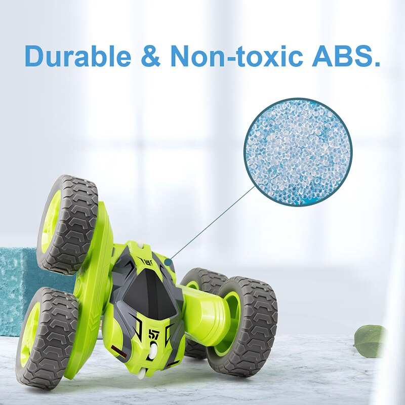 Small size, very stable. Double sides running, forward, backward, turn left, turn right, 360 degree tumbling flipping. Give you the different experience. The stunt car is a perfect toy for young kids as it can benefits their continuing brain development.