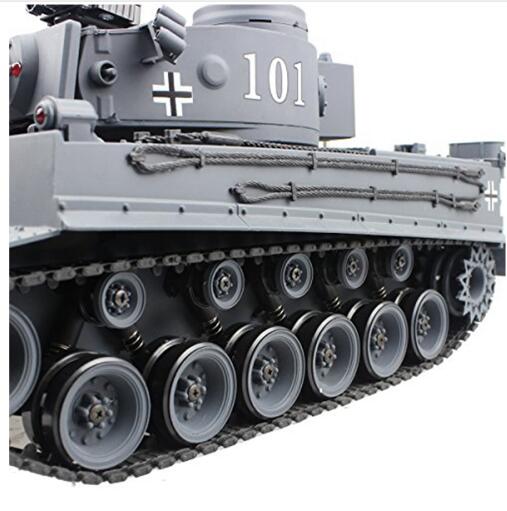 1/20 Panzerkampfwagen German Panther 4 Main Battle Tank Airsoft RC Battle Tank. This tank can move forward,accelerating speed forward(3 Speed), backward,rotating, barrel can be raised 30 degree.Turret can turn 120 degree.With this 27/40Mhz Radio System, with the functions of automatic identification and precise code pairing, strong anti-jamming.This is a 1/20 scale fully custom painted and assembled replica of the Tank with the long gun barrel featuring radio-controlled of all movement including turret rotation and gun elevation.It features full suspension and a main gun that fires 6mm BB pellets up to 9 feet! A great introduction to large scale radio controlled tanks.Maximum side turning angel of turret (left/right) approximately120-degree Maximum vertical turning angel of gun (up/down) approximately 30-degree Maximum climbing gradient (changeable on different road surfaces)supper chassis, Realistic suspension system Full scale R/C function simulative motor Engine sound,Cannonball sound Emulation action effect.Soft Rubber Caterpillar Moves on Ground,Grass,Sand and even more rough little rock.