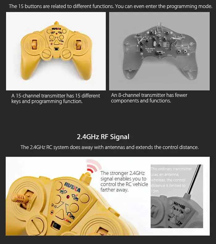 RCtown HuiNa Toys 1550 15Channel 2.4G 1/14 RC Car 680 Degree Rotation Metal Excavator Cool Sound/Light Effect Truck