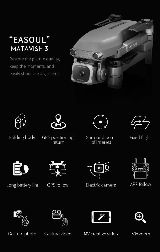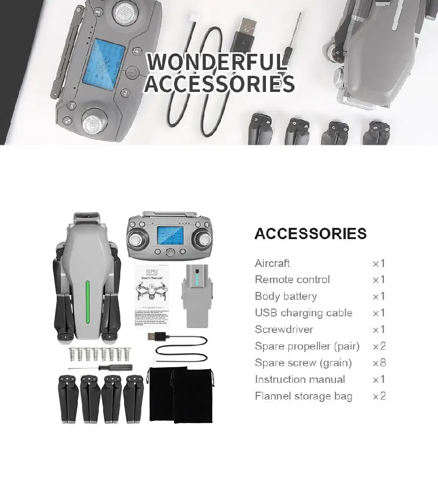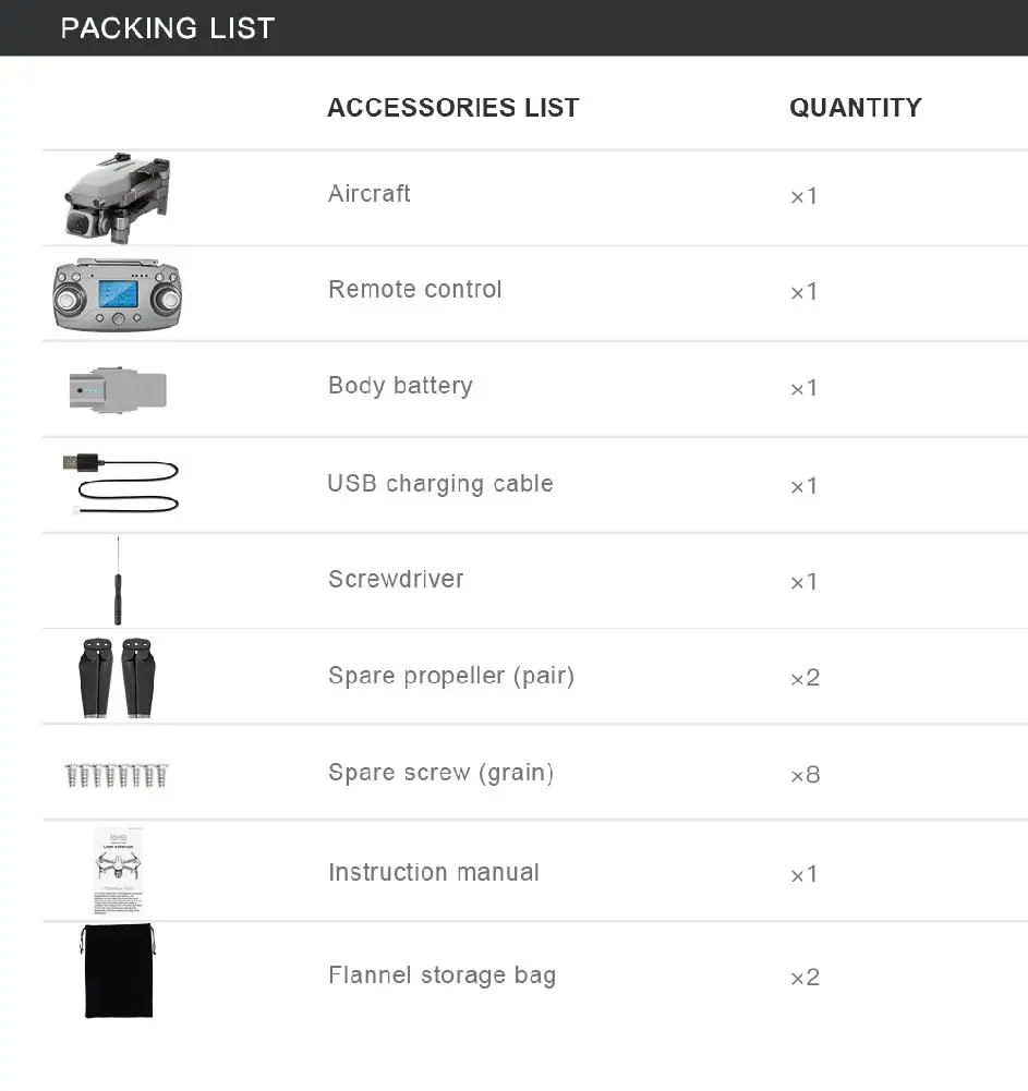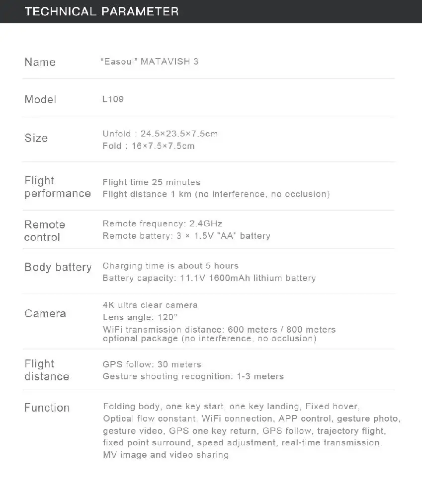 Quadcopter Size: 24.5*23.5*7.5cm (Unfolded); 16*7.5*7.5cm(Folded)