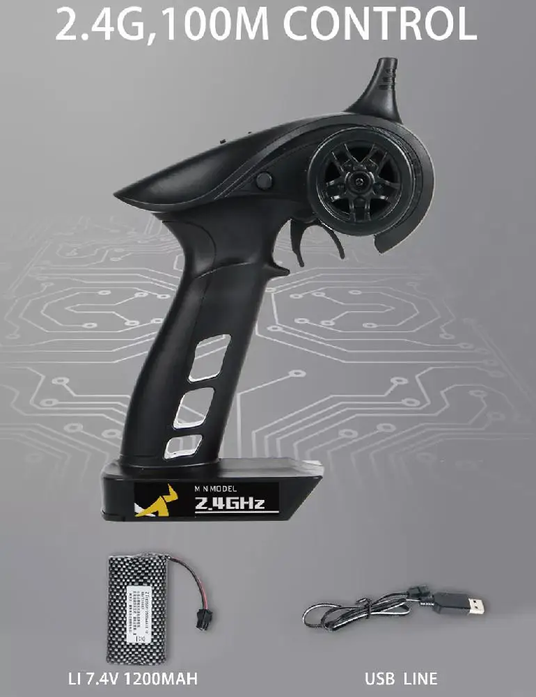 Description: Product Category:RC car Toy material: plastic / electronic components Color: white, blue Underbody: alloy skeleton, high quality nylon chassis Product specifications: 35*16.5*20.5CM Body battery: 7.4V/1200mAH lithium battery Remote battery: 5th battery*2(not include) Remote control mode: handle Life time: 20-30 minutes Charging time: 2-3 hours Applicable age: 15-35 years old Product tires: simulated compression tires; Remote control distance: 100 meters Remote control signal: 2.4Ghz Package include: Remote control car*1 7.4V/1200mAH lithium battery*1 Remote control*1 Charger*1 Instruction manual*1 Note: 1-2cm signal might exist due to manual measurements (note: 1cm=0.39inch), please kindly understand. The colors of might differ due to different monitor settings.