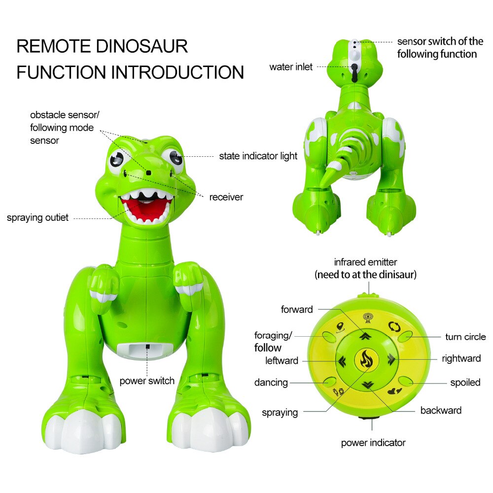 Remote Control Dinosaur Spraying Water RC Interative Walking Pet Light Up Eyes Dragon Dinosaur Robot with Humidifier Function