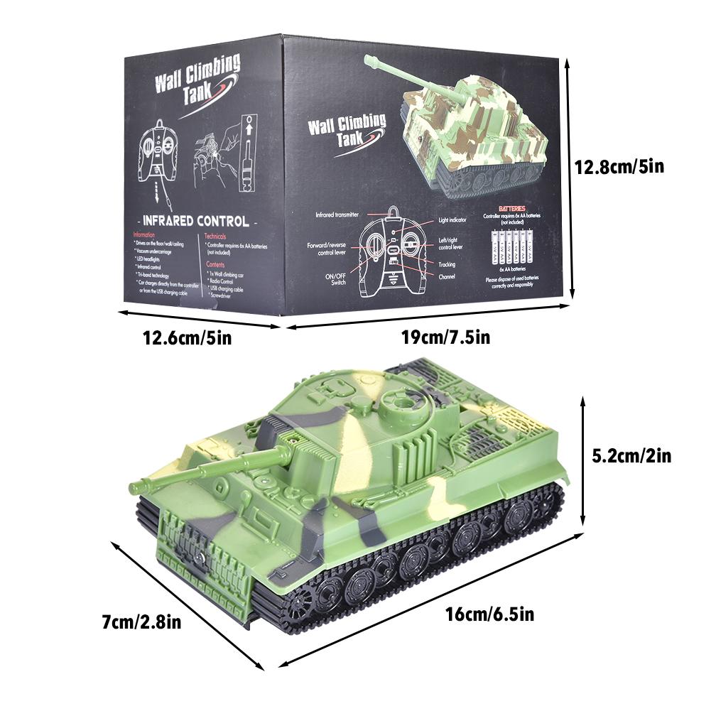 5、Unique Shape: This remote control tank is designed with a unique shape and can adopt to any terrain such as floors, windows, grass, muddy roads and even ceilings.