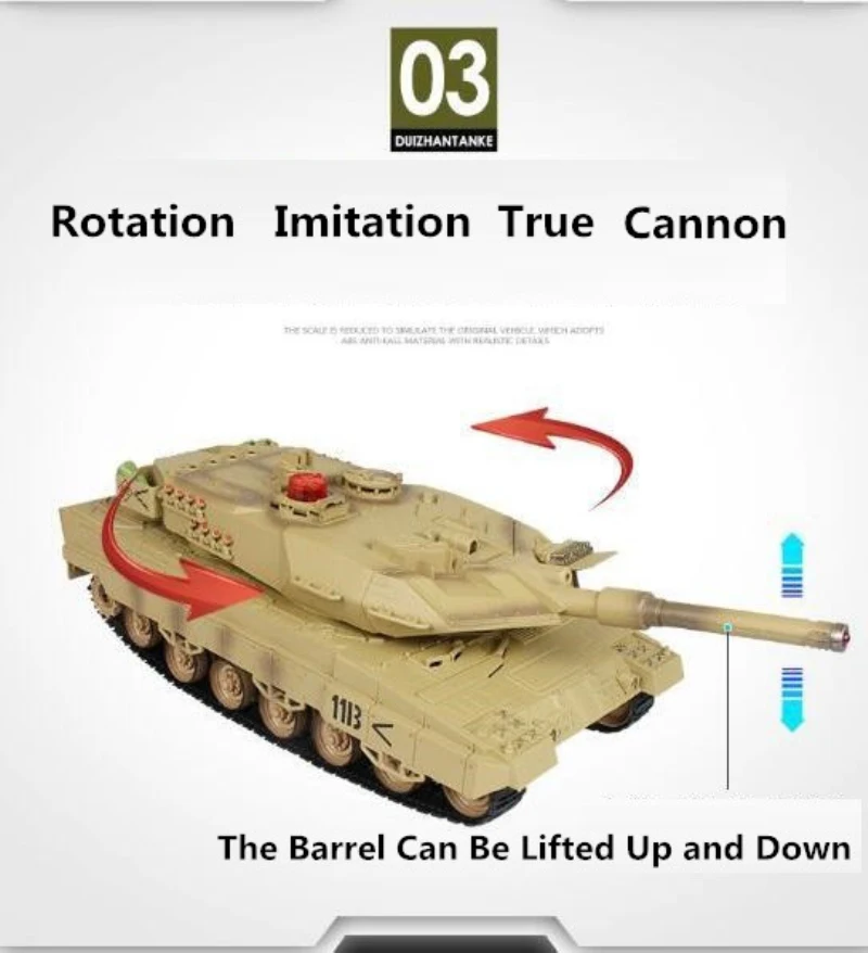 Remote Control Tank Charging Combat Tank Pistol Remote Control Rotating Turret Imitation True Sound Effect Beautiful Lighting