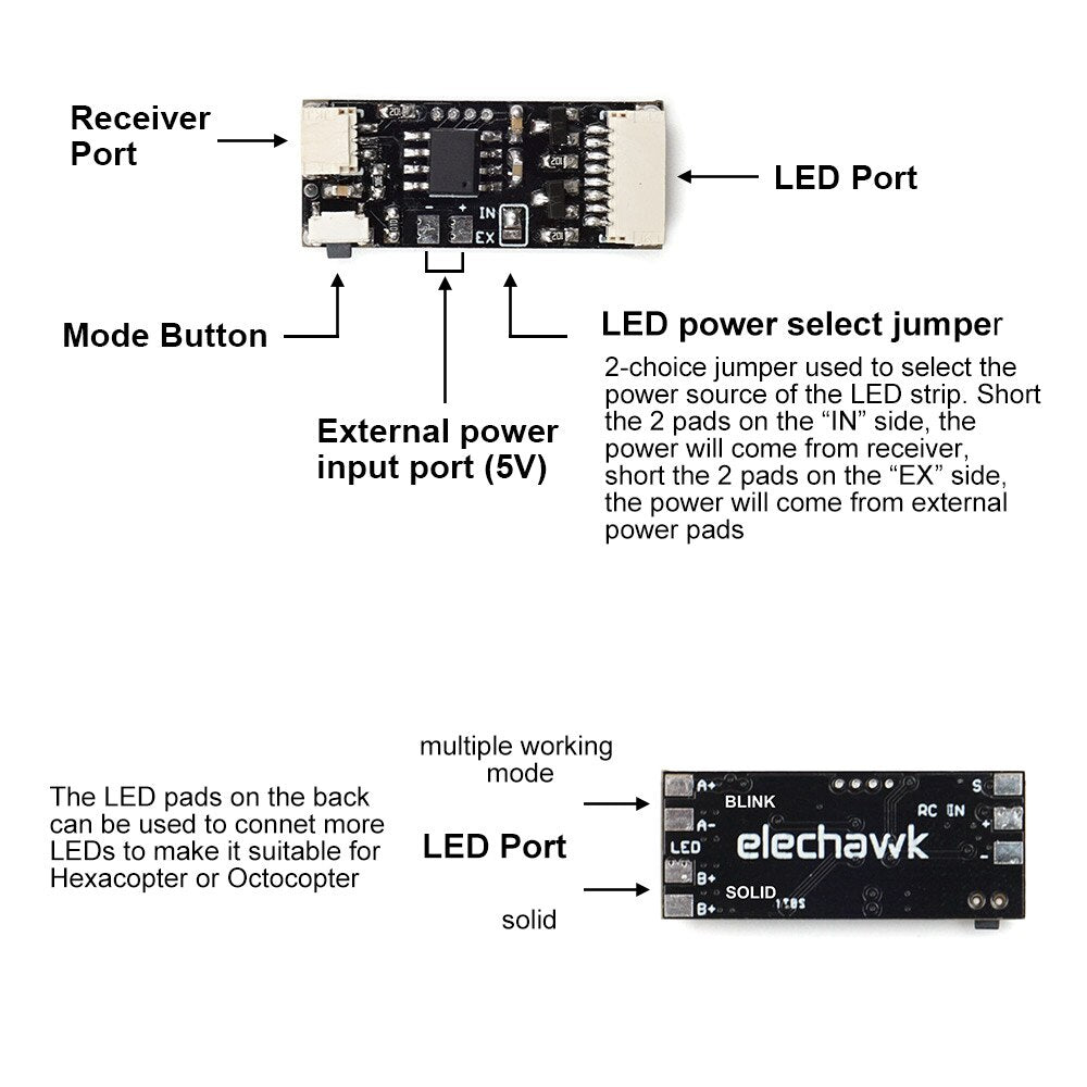 Spare ports for more LED make it suitable for Hexacopter or Octocopter.