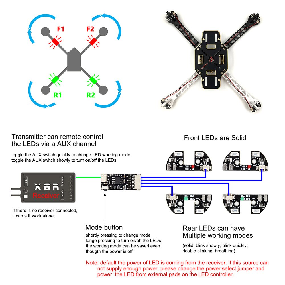 This LED light is suitable for F45 0 F450 F330 F550 S500 S550 Quadcopter Hexacopter Frame