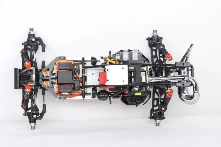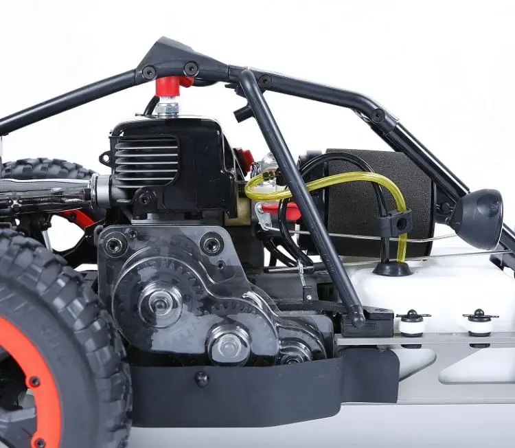 Scale 1/5 1. Rovan 36CC Four-point Fixed 2T Gasoline Engine 2.Length x width x height LxWxH: 817x480x255mm 3.Front track 395mm / rear 400mm 4, wheelbase 610mm 5, 4WD-four wheel drive 6.Shaft drive 7.Front and rear differential system 8.Rear output shaft brake 9.Front CVD drive shaft 10.Rear axle head drive shaft 11.Metal clutch cup support cover 12.RC4G Chinese and English 2.4G LED screen 4-channel remote control 13, 18 kg throttle brake steering gear 14.Double steering 45KG all metal gear steering gear 15, 16.Dominator exhaust pipe 17, 6mm metal shock absorption 18.Front and rear anti-roll bar group 19,4mmCNC one-piece 6061T6 aluminum alloy large chassis 20.Plastic roll cage 21.High-strength PC material car shell 22, gravel tire assembly (red border) 23.Metal shock absorption support tower before and after CNC 24.New matching pot