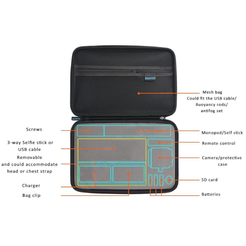RUIGPRO Portable Carry Case Large Size 63x227x335mm Storage Bag for GoPro Hero 3/4/5/6/7/8 SJCAM M20 SJ6 SJ7 FPV Action Camera