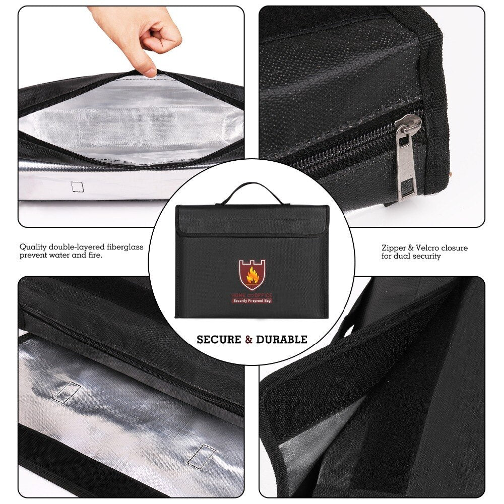 FIRE PROOF & WATER RESISTANT - Made of high quality Silicone Coated Retardant-fiberglass exterior and aluminum foil interior, which can withstand temperatures as high as 1000℃ (about 1832℉), so you can keep all your valuables 100% safe.
