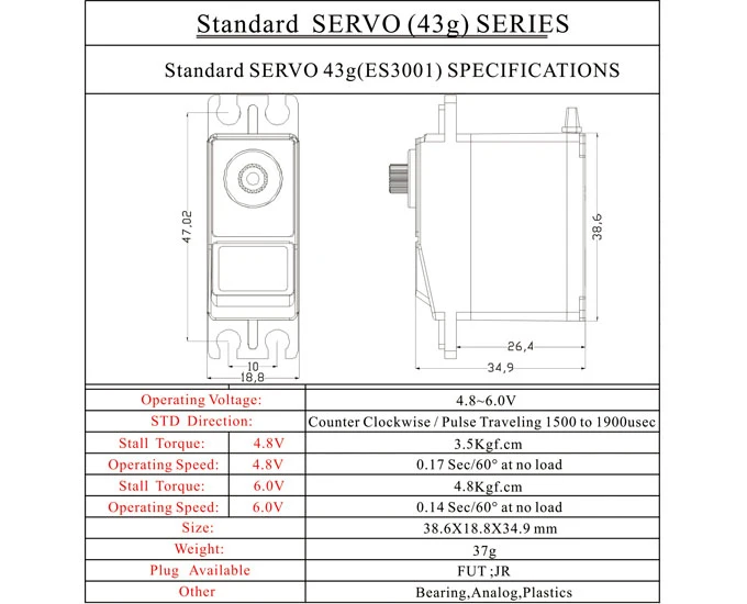 Simulation Steering Engine SERVOS 3001 Yinyan 37G Standard Steering Engine Bring ) Airplane Ship Model General Purpose