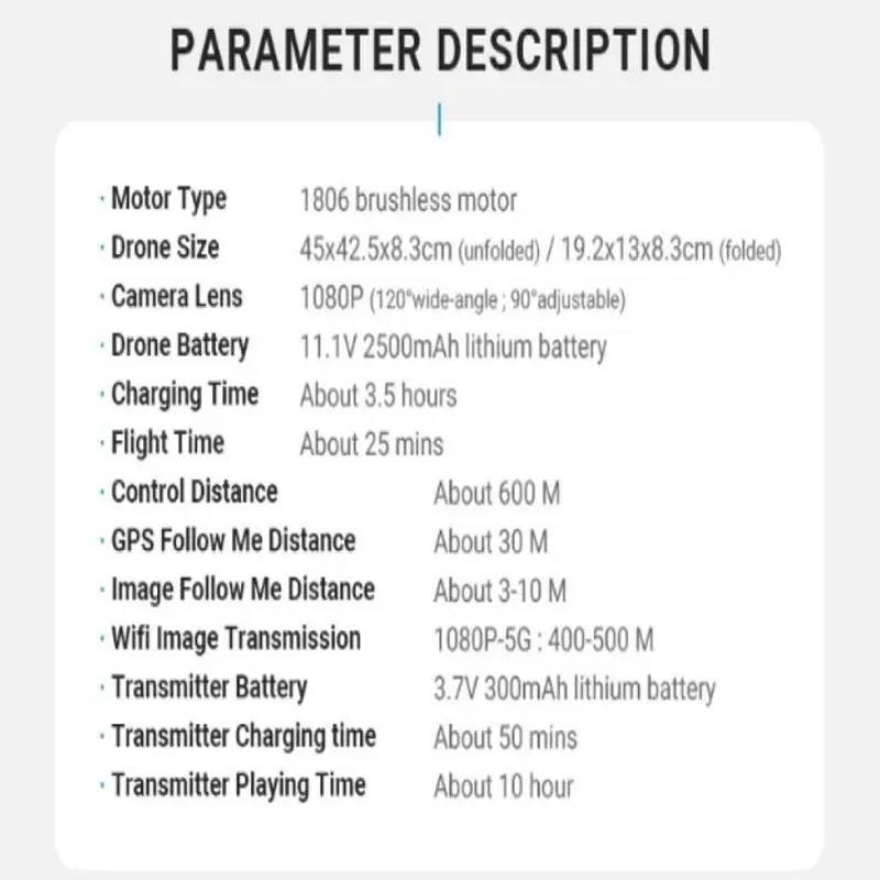 Quadcopter size: 450 * 425 * 83mm (unfolded)  192 * 130 * 83mm (folded)