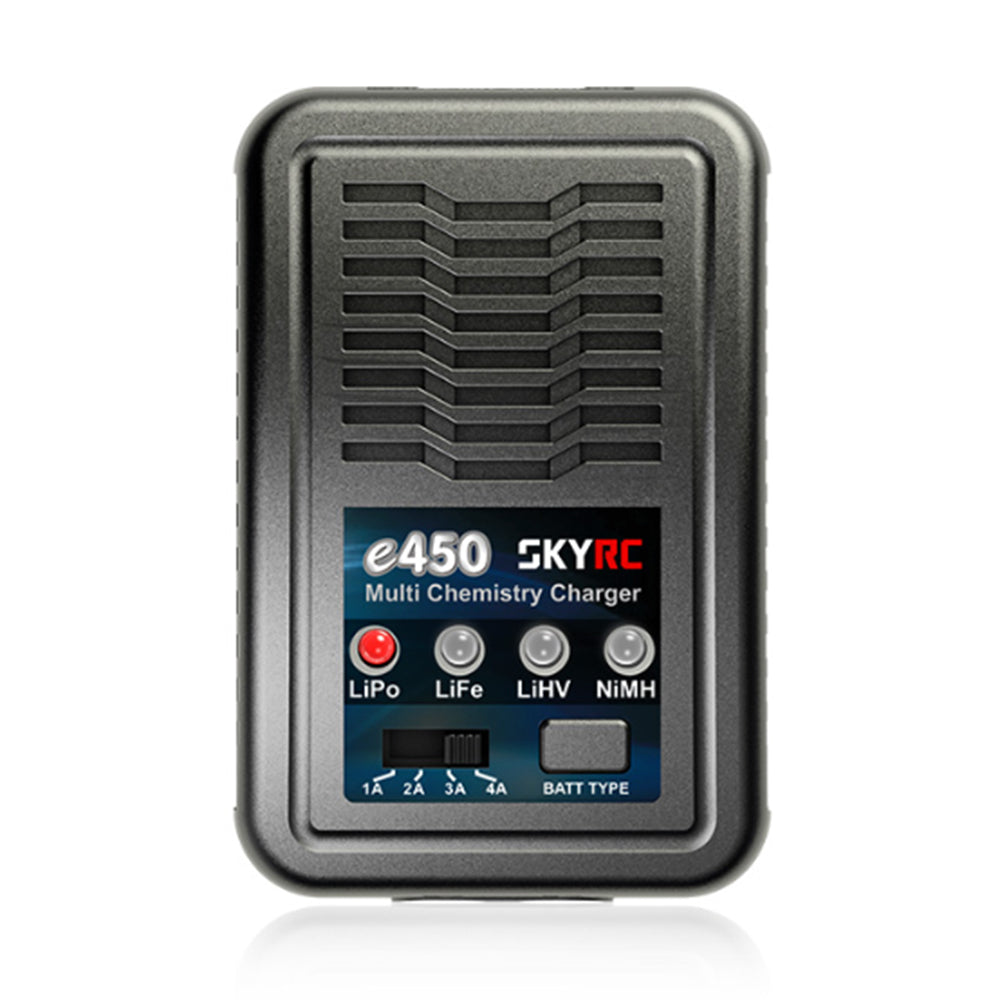 SkyRC e450 Charger is an economic, high-quality 100-240V AC balance charger, designed for charging LiPo, LiFe and LiHV batteries from 2-4 cells in balance mode. It also can charge 6-8S NiMH batteries. The circuit power is 50W and max charge current can reach to 4A. There are four kinds of charge current 1A/2A/3A/4A that can be selected.You could select the proper charge. current according to battery capacity.