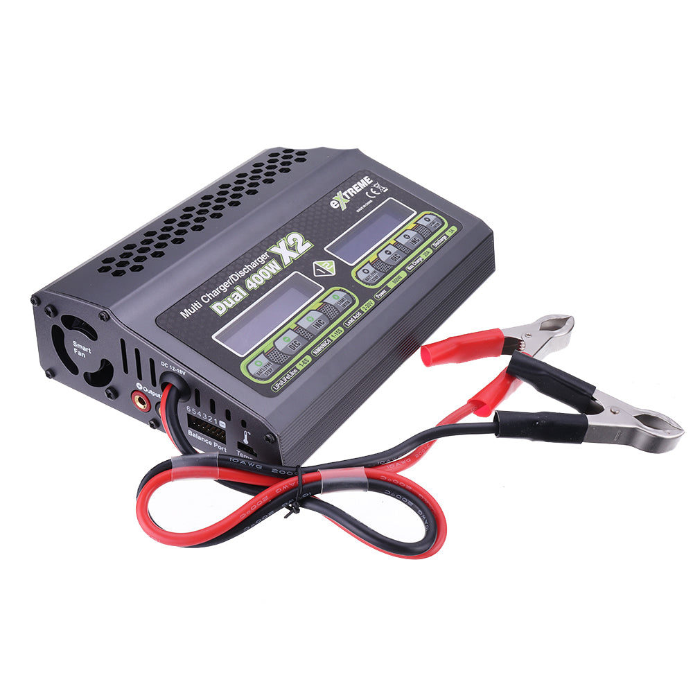 The Extreme 400Wx2 alloy case has cooling holes on top and dual temperature controlled fans to keep the internal temps low. This is a powerful, well thought out dual charger at a great price!