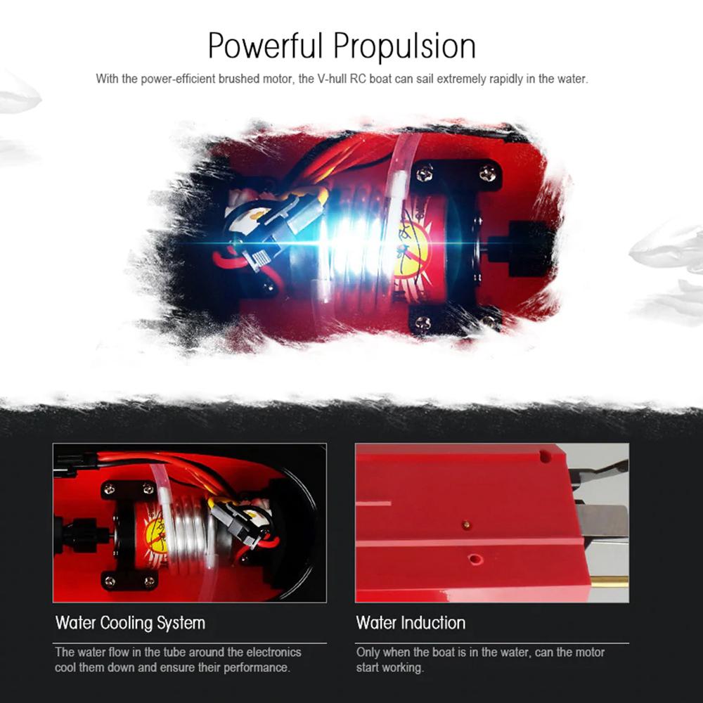 1, 30 km / h, powerful motor and V-shaped hull to ensure low resistance in water