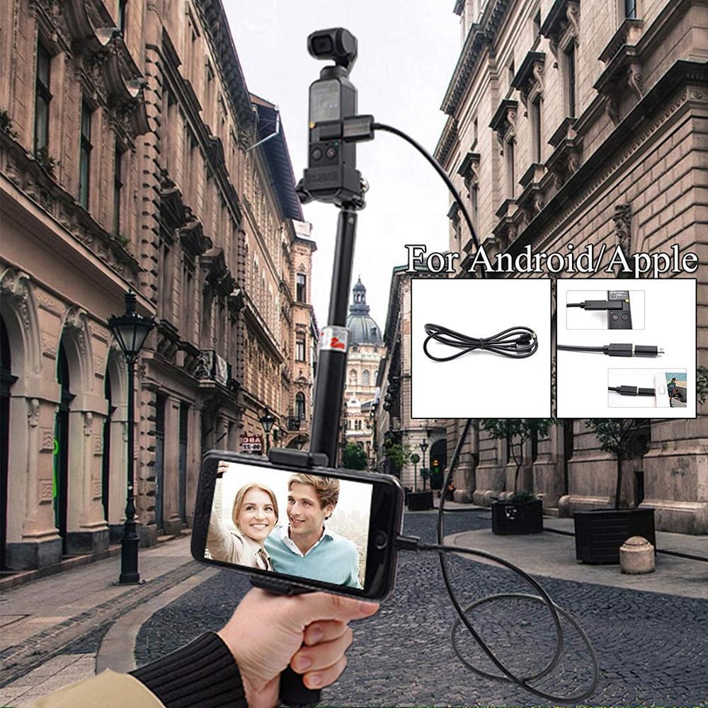 * Selfie Stick with the cable: It can work on iOS smartphones ,You just need to install the light USB data cable to your phone,then you can use your osmo pocket selfie.